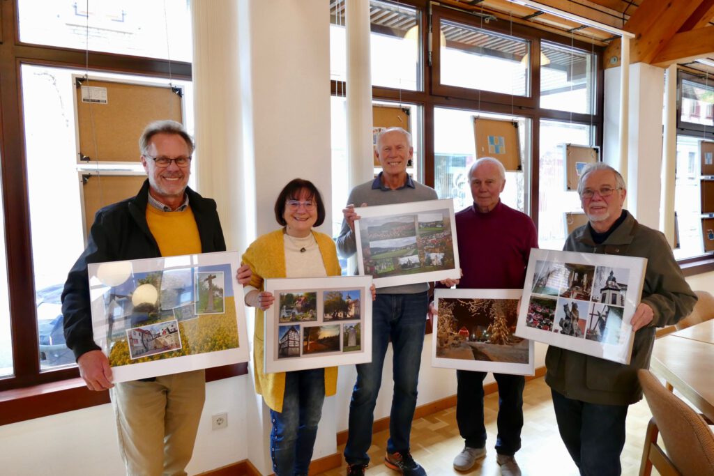 Neue Fotoausstellung Rathaus Lauda-Königshofen (Fenster Sitzungssaal) ab 10. April 2024 – Aussteller: Reinhold Hofmann, Dieter Göbel, Angelika Endres, Erich Hellmann + die Helfer beim Aufbau: Ingo Hermann + Norbert Gaul